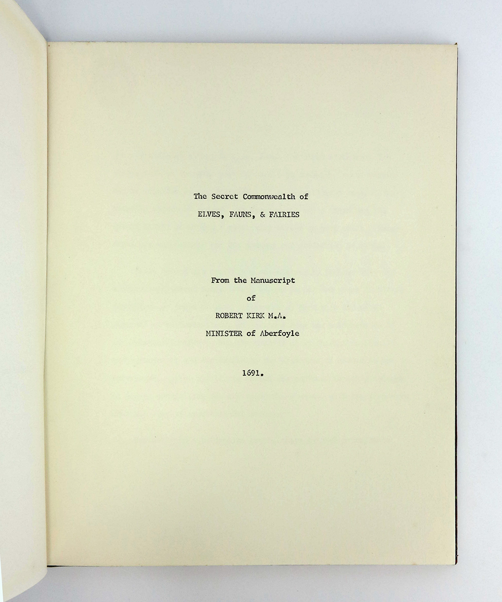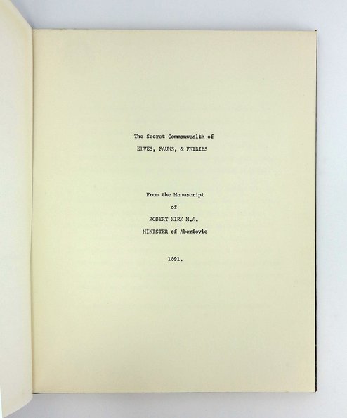 Taken from the 1691 manuscript of the Minister of Aberfoyle on the second sight and Scottish mythology as fact, with Foreword on the existence of elementals and belief. Rare.