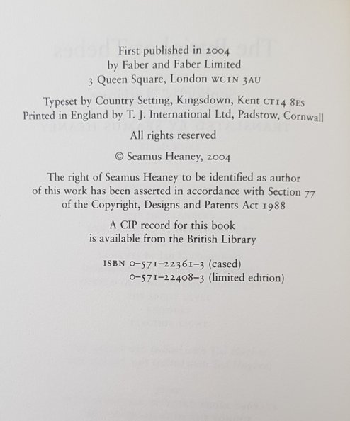 Heaney’s urgent and arresting verse translation of Sophocles’ great tragedy Antigone. Commissioned to mark the centenary of the Abbey Theatre in Dublin.