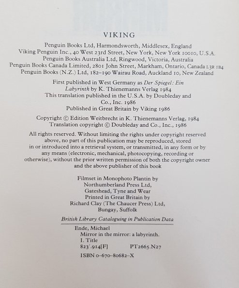 Highly regarded illustrated first edition of Ende’s ambitious, metaphysical work comprising of thirty interconnected short-stories. With striking illustrations and jacket design taken from the work of the author’s father, the celebrated surrealist artist Edgar Ende. It was his father’s labyrinthine, dream-like artworks which inspired the conception of the stories.