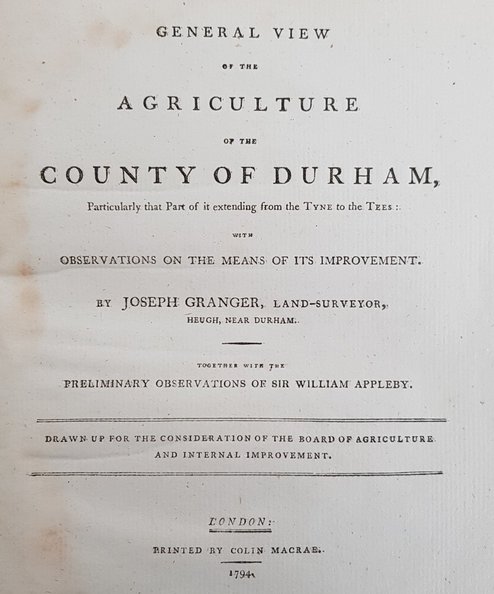 General view of the agriculture of the county of Durham, particularly that part of it extending from the Tyne to the Tees: with observations on the means of its improvement. By Joseph Granger, [...] with the preliminary observations of Sir William Appleby[...]