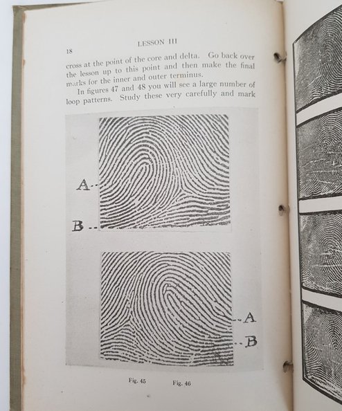 Early guide on methods of forensic investigation. At this time, finger print technology had just become of age and it was of major interest. This highly popular guide, with additional sections on early criminal profiling, shadowing, and extracting confessions contributed to the boom of private eyes in the 1920s. A compelling piece of early 20th century true crime history.