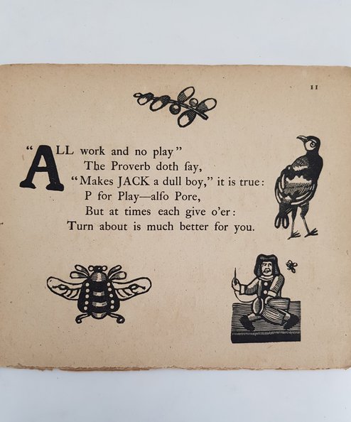 Crawhall’s sequel to Old Aunt Elspa’s ABC. Illustrated throughout in Crawhall’s unique artfully naive, vernacular style and including some absurdly funny images. Crawhall’s fervent antiquarianism, and his home town’s rich history of chapbook and street literature production, greatly inspired his anachronistic illustrations. However, his bold and graphic work is also incredibly forward looking and does not look out of place alongside the work of contemporary illustrators today. A fragile production and one of Crawhall’s rarer collaborations with Andrew Tuer, it can sometimes be found hand-coloured.