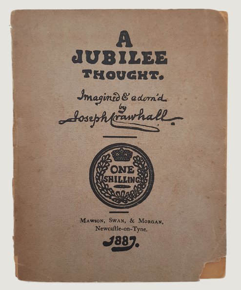 Compiled to celebrate the Jubilee of Queen Victoria and illustrated throughout by Crawhall’s artfully naive and absurdly funny woodcuts. This copy has been gift inscribed by Joseph Crawhall II (1821-1896) to Thomas Hutchinson (1856-1938) of Pegswood, Morpeth. With late nineteenth century newspaper clippings relating to Crawhall, and a tipped in leaf between pp. 58 and 59 bearing an envelope addressed to Hutchinson in Crawhall’s distinctive hand. Thomas Hutchinson was an established Northumberland poet, avid book collector and the author of “Ballades of a Country Bookworm”, as well as several well received studies on the Romantic Poets. He frequently wrote to his contemporary authors and fastidiously saved this correspondence, newspaper clippings, and ephemera by attaching them to his books, of which this copy is an example.