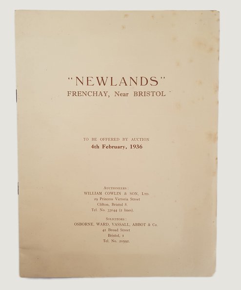 Particulars, Plan. Photograph & Conditions of Sale of the Delightful Country residence known as "Newlands", Frenchay [Estate Sale /Auction catalogue].
