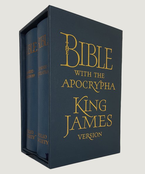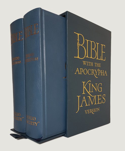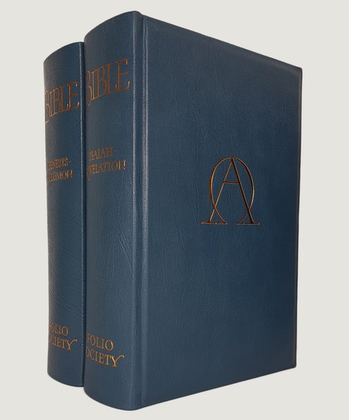 LIMITED EDITION OF 1000 COPIES ONLY, of which this is number 199. Large octavo, 2 vols. pp. xxxv, [1], 884, iv, 885- 1868. With calligraphy by Stephen Raw, text rubricated in red and black. Bound in Teal blue full morocco leather over bevelled boards, with gilt Alpha-Omega ornaments to upper boards, gilt spine titles, gilt fore-edges, pale blue endpapers, gold and blue silk markers. Housed in a cloth covered wooden slip-case which is lined in cream water-silk and with sliding tray. Vol. I: Genesis to Solomon; Vol. II: Isaiah to Revelation. Fine books in a fine slipcase.