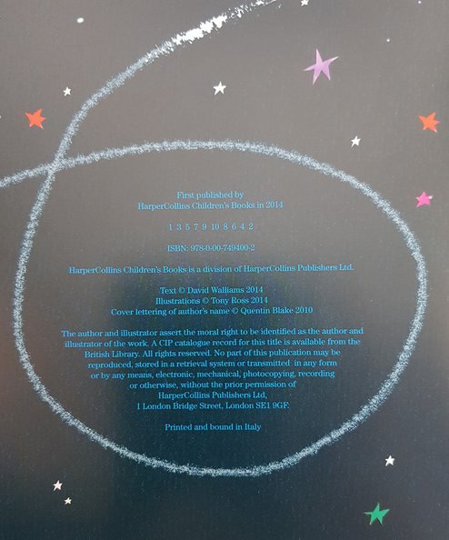A tale of perseverance about a hippo who never gives up on her dream to travel to the moon. Hilarious picture-book by the much-loved best selling children’s author, brought to life with illustrations by Tony Ross. Signed boldly by Walliams and Ross to the ffep.