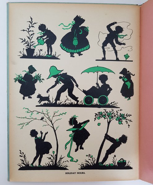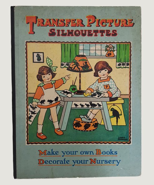 FIRST EDITION. Folio, 6 leaves of over one hundred coloured transfers, 24 pages of coloured blank paper, with illustrations and instructions for use to front and back pastedowns. Bound in baby blue illustrated publishers’ boards with nursery scene to upper board, and children’s silhouette to lower board, with cloth strip to spine. Boards lightly soiled with edges rubbed and a small closed tear/bump to edge of lower board with bright vibrant cover illustrations. Contemporary bookseller’s ticket to front paste-down. Contents bright, clean, and free from annotations. Transfers are remarkably intact. A very good copy.