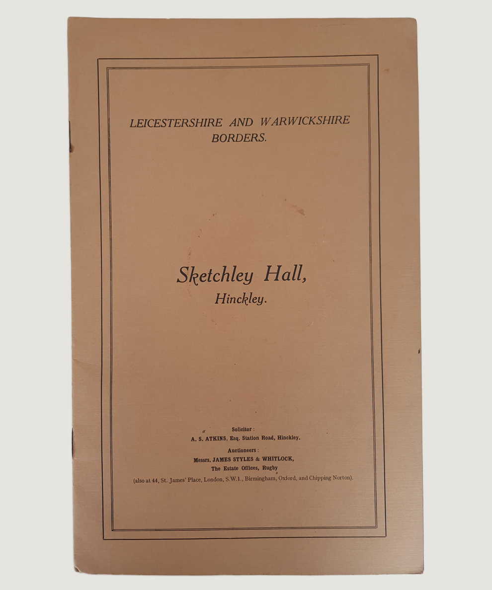 Particulars of Sale of the Valuable Freehold, Residential and Agricultural Estate known as Sketchley Hall, Hinckley [Estate Sale/Auction Catalogue].