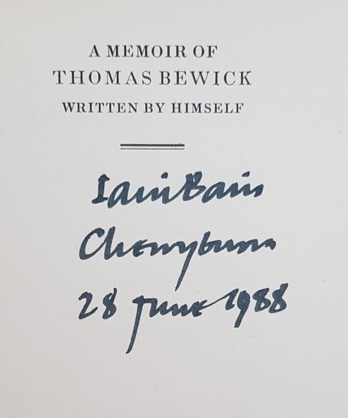 This copy of Thomas Bewick’s memoirs is signed and dated, at Cherryburn, Bewick’s birthplace, by editor and renowned Bewick scholar Iain Bain. This edition also features an introduction by Iain Bain.
