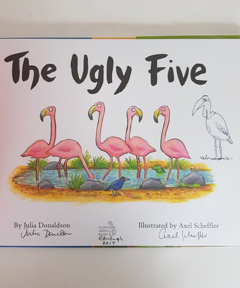 Signed boldly to the title page by the former UK Children’s Laureate and internationally acclaimed author, Julia Donaldson, and world renowned children’s illustrator, Axel Scheffler. With an original sketch of Lappet-Faced Vulture by Scheffler, dated “Edinburgh 2017”. Rollicking feel good friendship fable by the creators of The Gruffalo. This long-running collaborative partnership has produced many modern classics loved by adults and children alike.